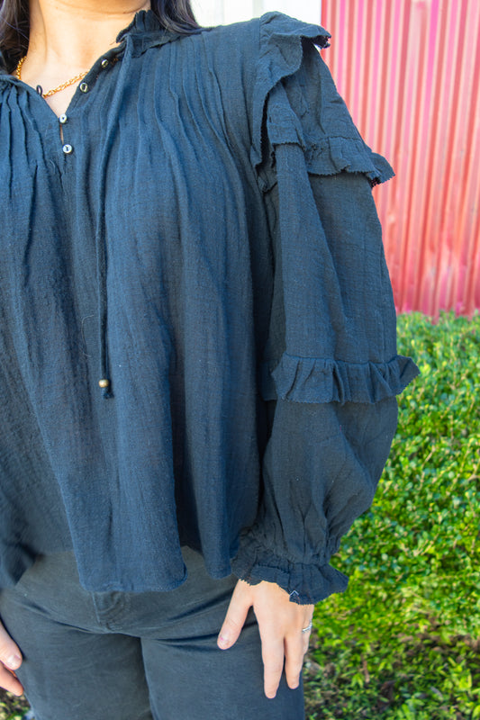 Black Ruffled Sleeve Top