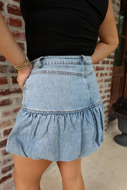 Sold outDenim Bubble Hem Skirt