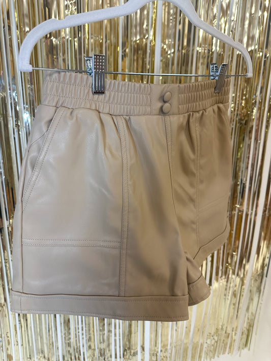 Faux Leather Beige Shorts