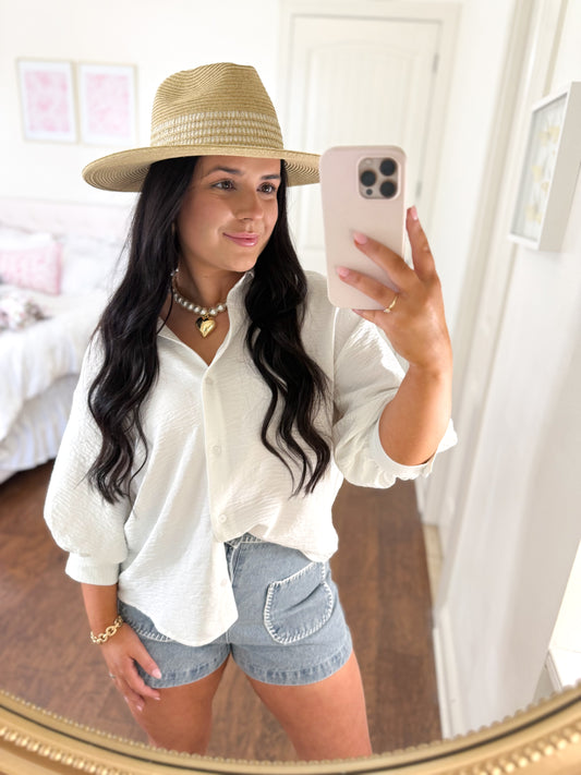 White Bubble Sleeve Top (Restocked!!)