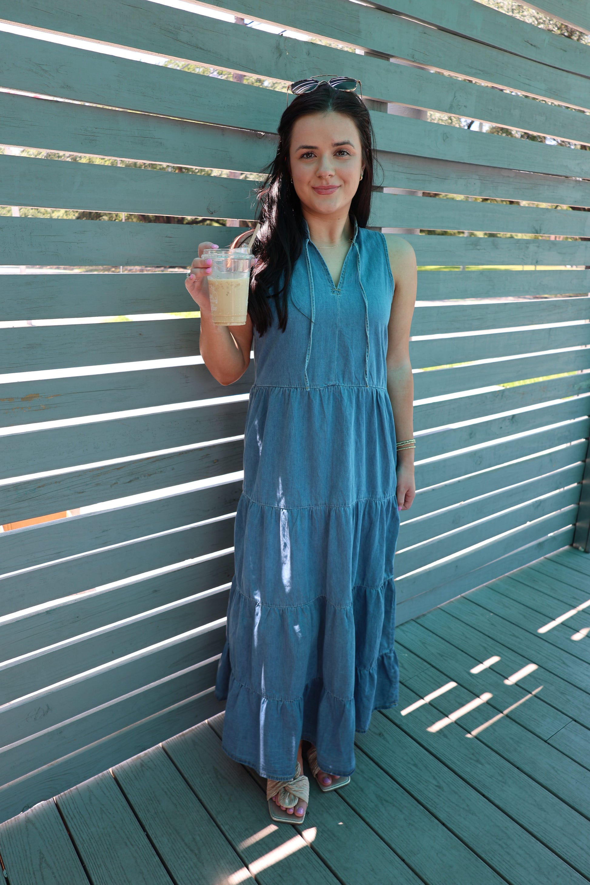 This Denim Maxi is perfect for summertime and even for Fall! It is so flattering and comfortable! Throw on for vacations, brunch, date night, and so much more.