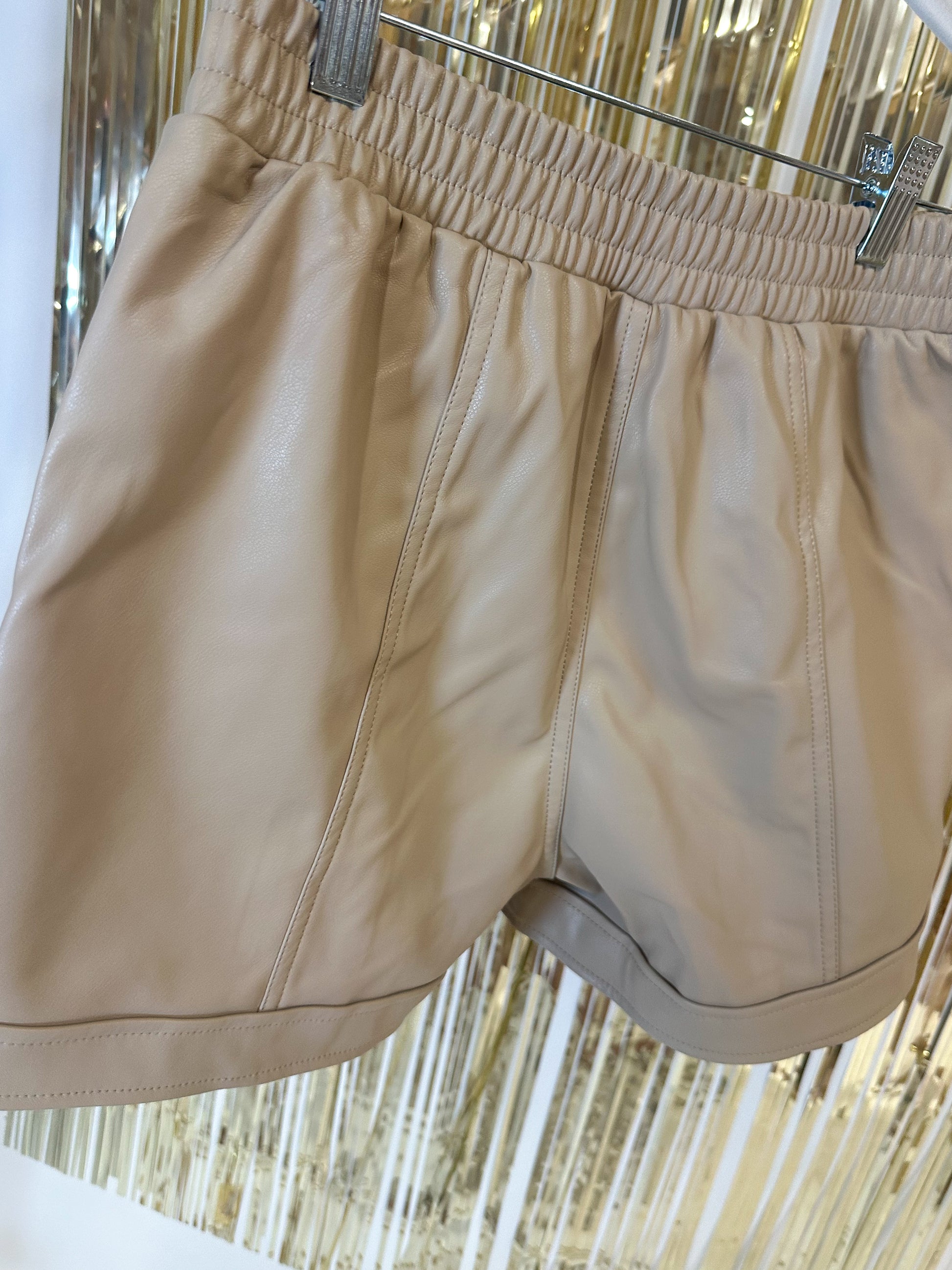 These faux leather shorts are so comfortable and classy! Perfect for transitioning into fall and these shorts can be dressed up or down! These shorts feature an elastic and high rise waistband, faux buttons, and two front pockets.