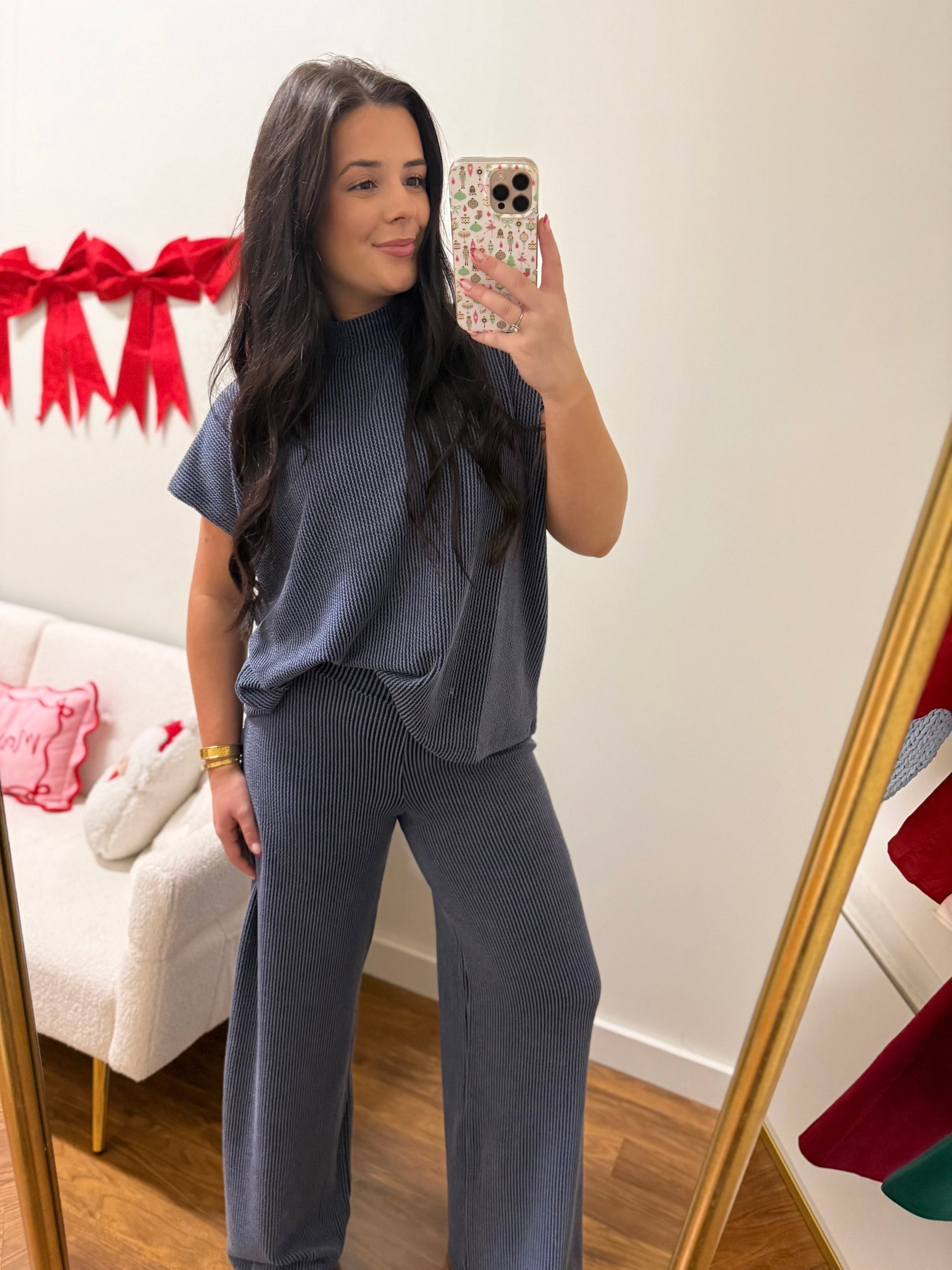 Ribbed Navy Pant Set